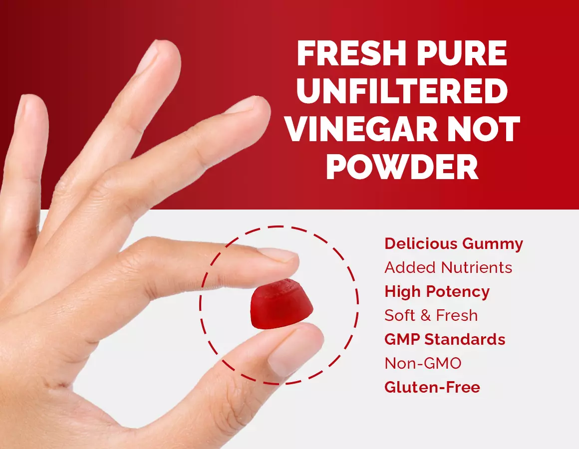 Take one yummy chewy vegan apple cider gummy per day = 30 days supply and experience the numerous health benefits of apple cider vinegar, without the sour taste.
