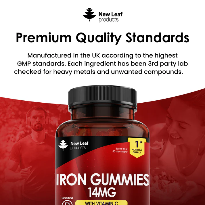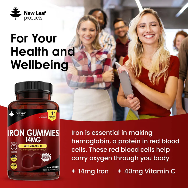 At New Leaf, we believe in making self-care enjoyable. Our Gummies are easy to swallow, making them a delightful treat rather than a chore. With a maximum-strength formula of 14mg per dose, our gummies offer one of the highest iron concentrations available. Each pack contains 60 gummies, ensuring a 1-month supply. Moreover, our Iron Gummies are vegan and gluten-free, catering to various dietary requirements.