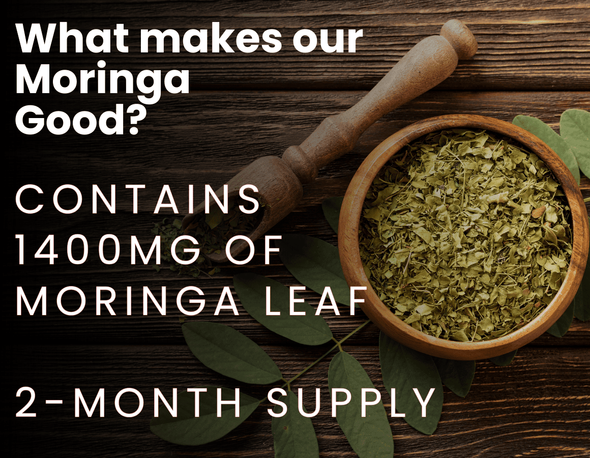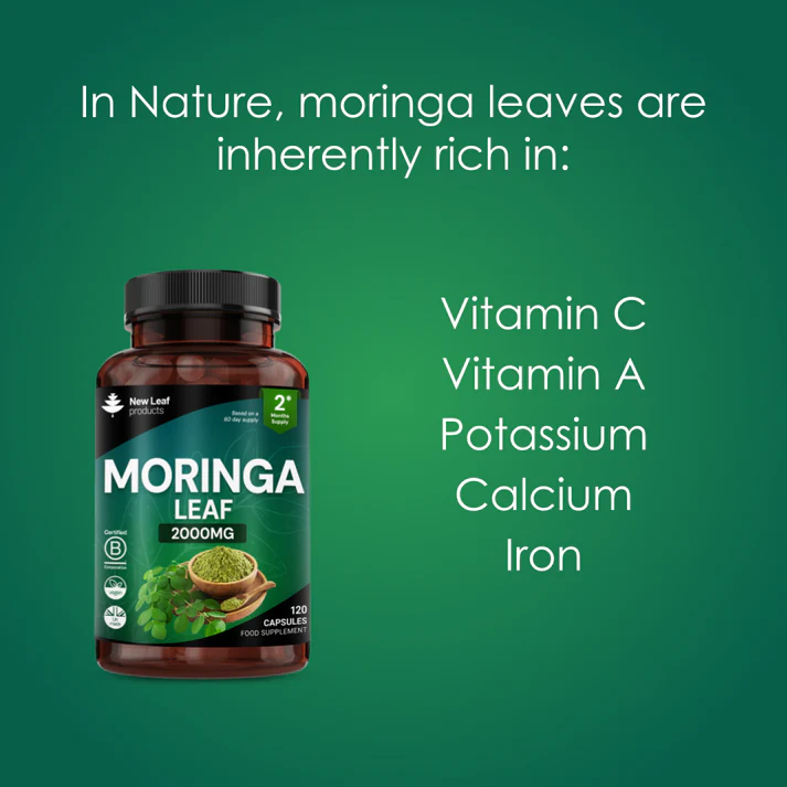 - High Strength 2000 MG – Take two Moringa Leaf Capsules per day