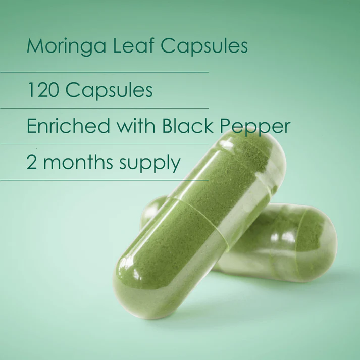 - Store the Moringa Leaf Capsules in a cool, dry place away from sunlight, heat, and moisture.