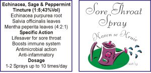 The Sore Throat Spray mixes Echinacea, Sage and Peppermint tinctures.