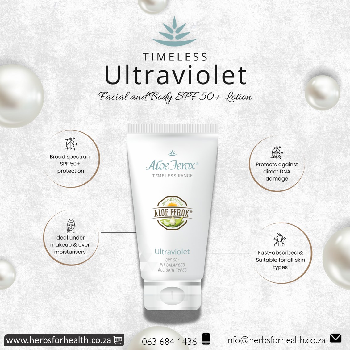 Ultraviolet is a broad-spectrum sunscreen lotion enriched with sustainable nutrient-rich aloe from Albertinia in the beautiful Western Cape.